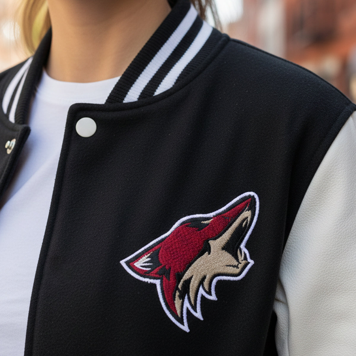 Arizona Coyotes Black and White Varsity Jacket - NHL