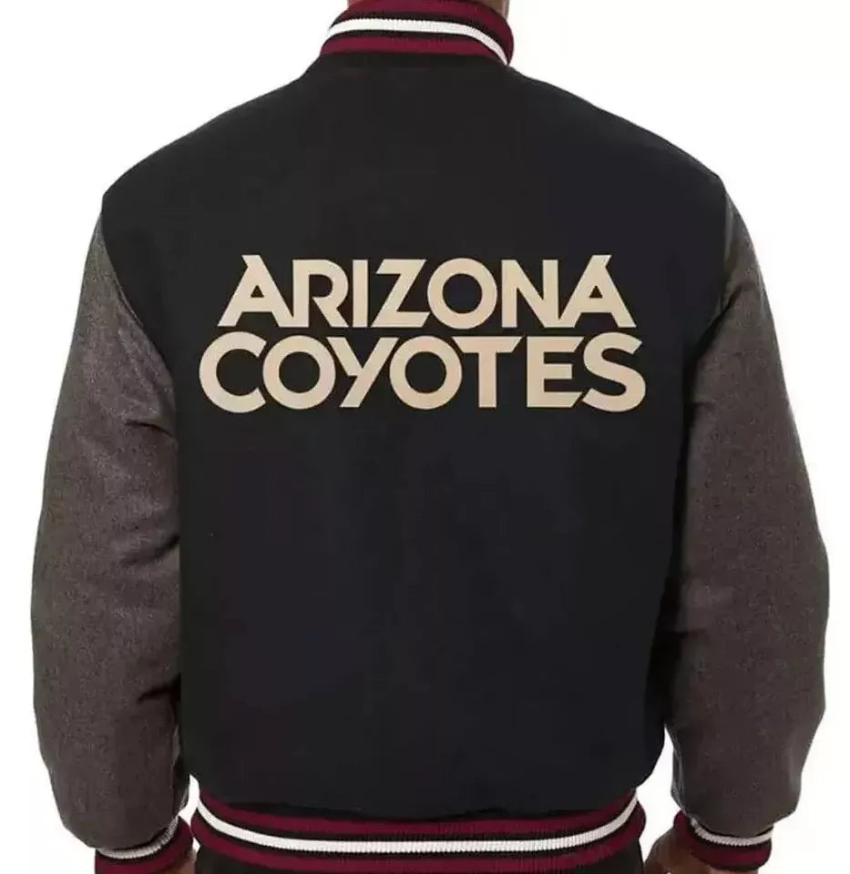 Arizona Coyotes Black and Grey All Wool Lettermen Varsity Jacket