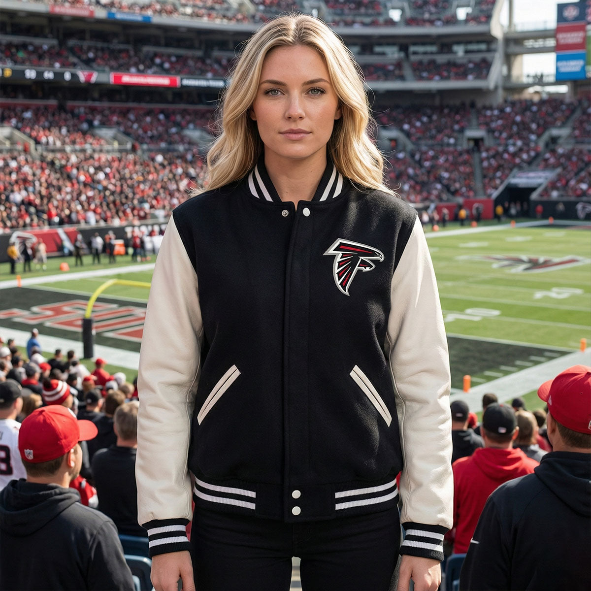 Atlanta Falcons Letterman Varsity Jacket Wool with Genuine Leather sleeves NFL