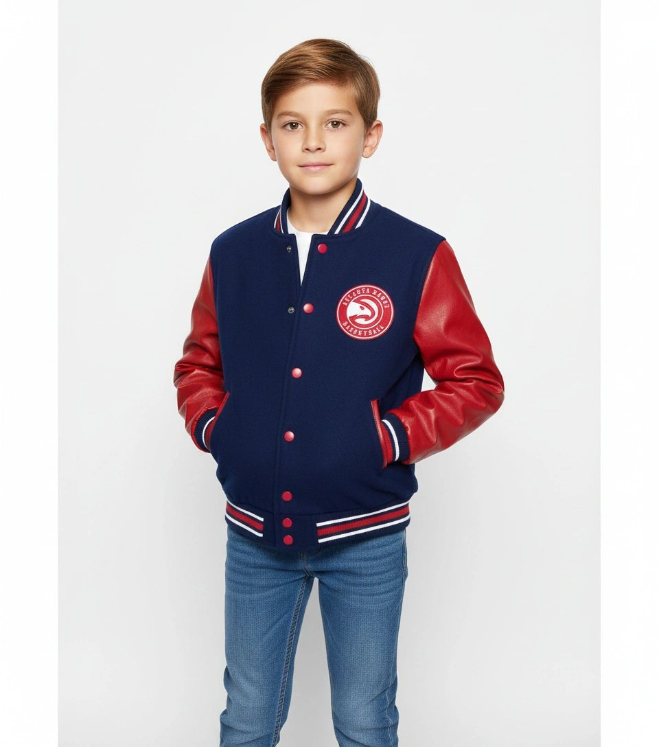 Atlanta Hawks Blue and Red Varsity Jacket With Genuine Leather Sleeves - NBA