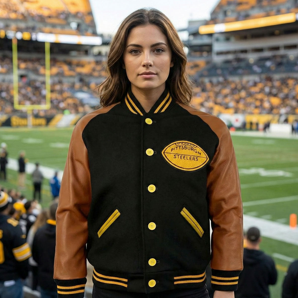 1955 Pittsburgh Steelers Varsity Brown and Black Jacket - NFL