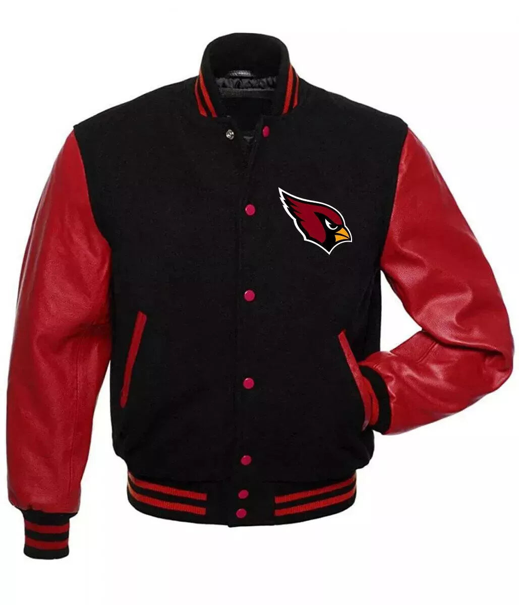 Arizona Cardinals Varsity Jacket Wool & Genuine Leather Sleeves black and red - NFL