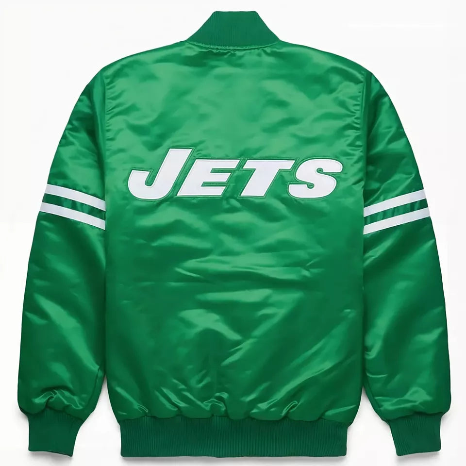 80s NFL New York Jets Green Satin Bomber Letterman Baseball Varsity Jacket green