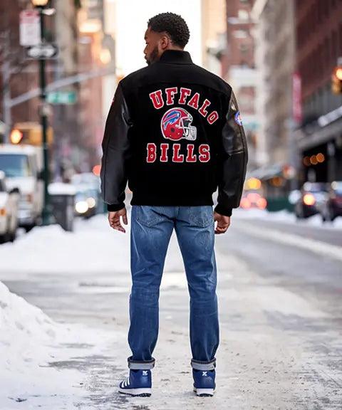 90’s Style Buffalo Bills Letterman Varsity Jacket with Leather Sleeves