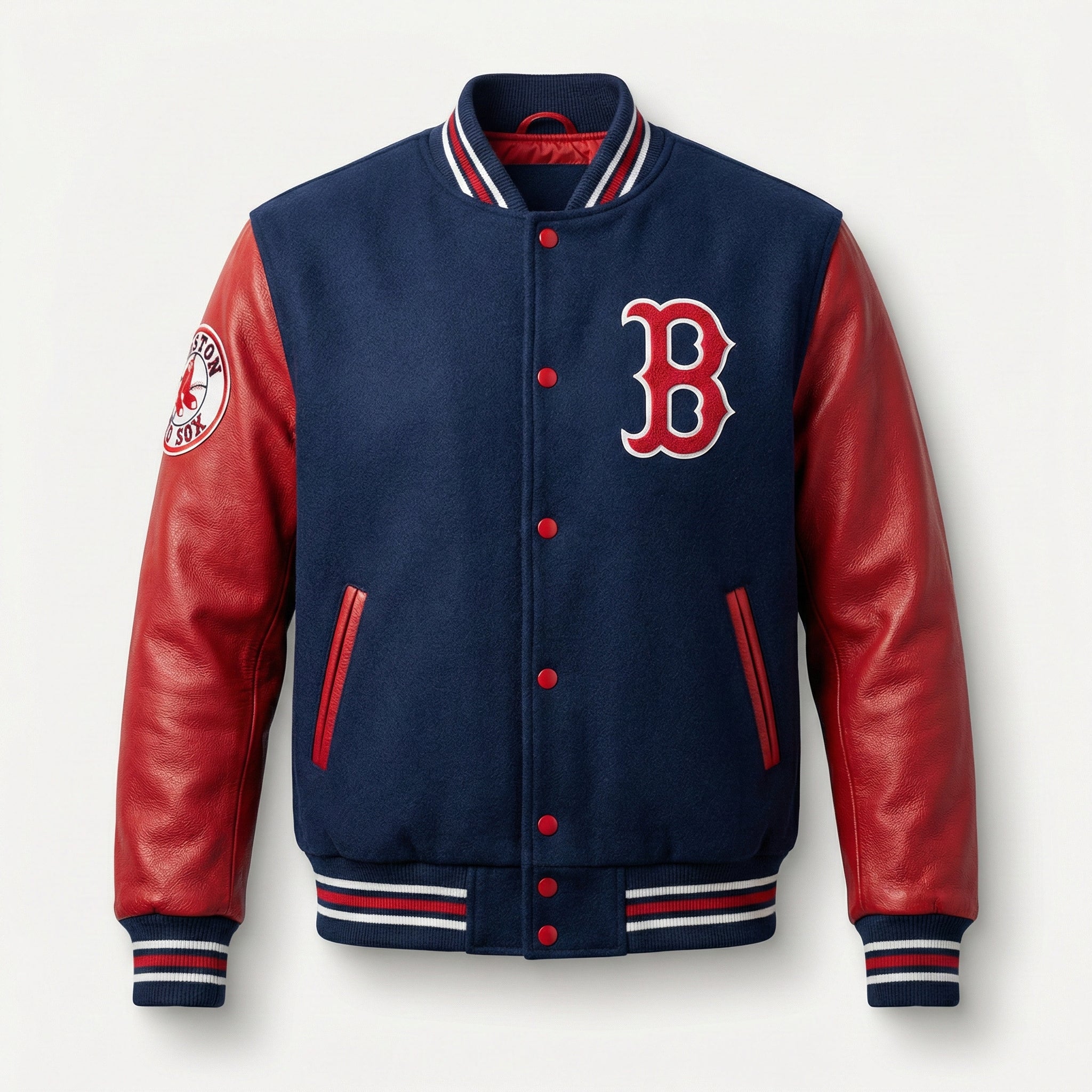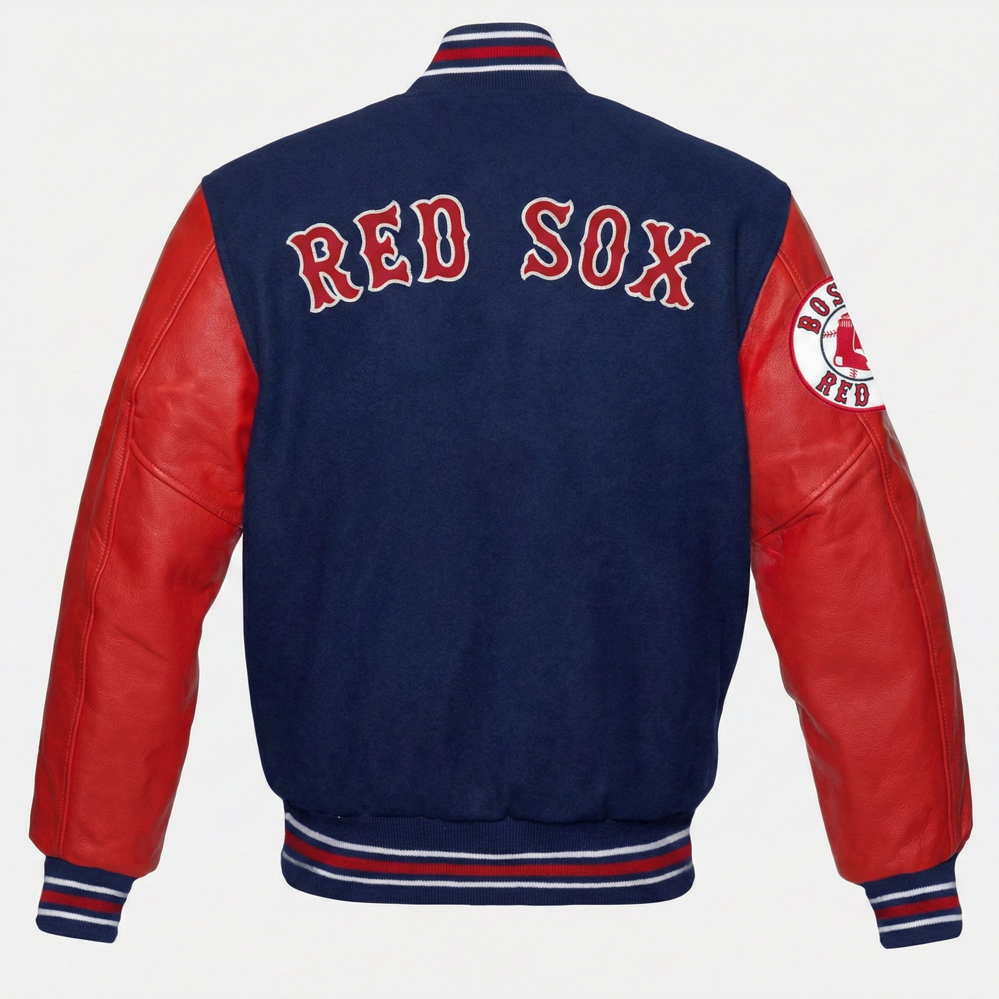 Boston Red Sox Red and Blue Letterman Varsity Jacket with Leather Sleeves - MLB