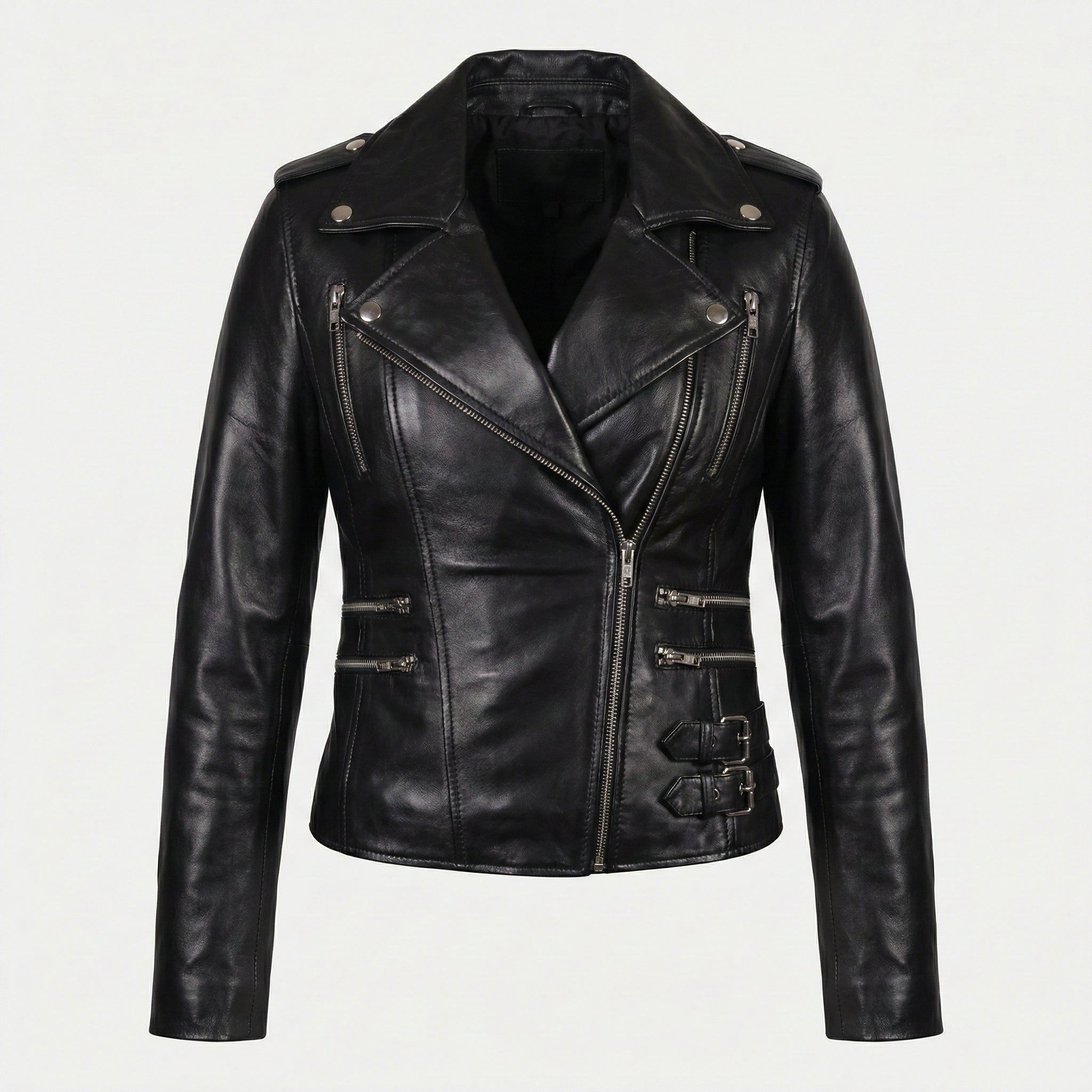 Black Leather Jacket Women's Biker Motorcycle Women Soft Fit Size Real