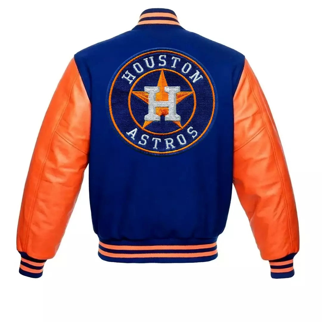 Houston Astros Letterman Varsity Jacket Wool With Genuine Leather Sleeves
