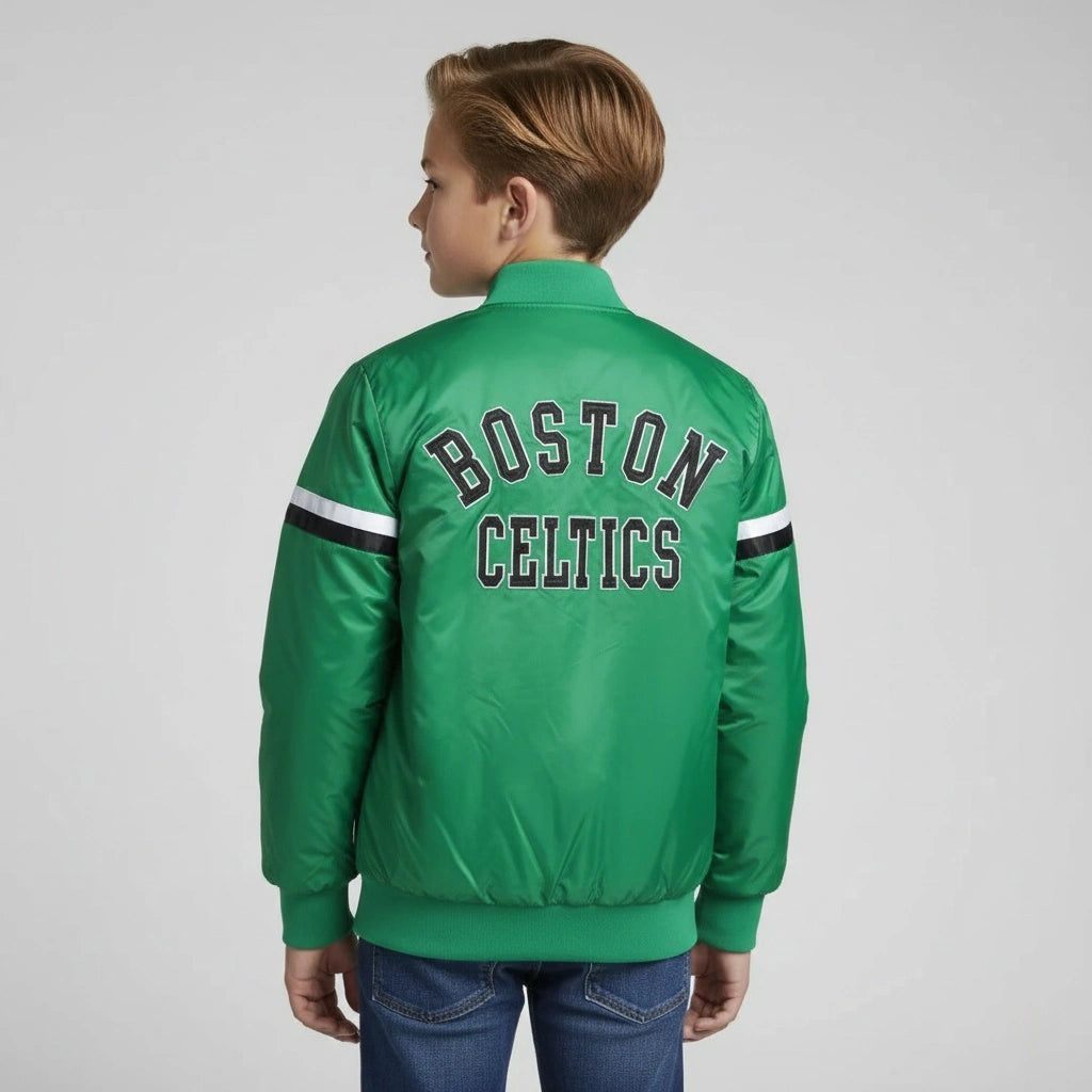 Boston Celtics Green Satin Bomber Kids Letterman Varsity Jacket - NBA