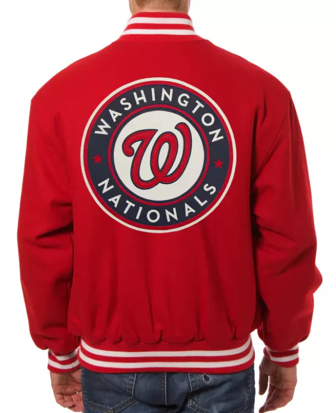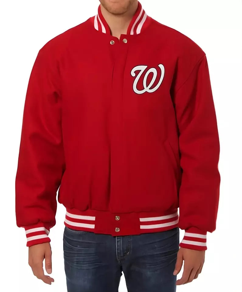 Men Washington Nationals Letterman Varsity Jacket Red Wool - Baseball MLB