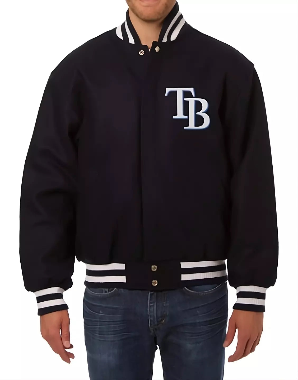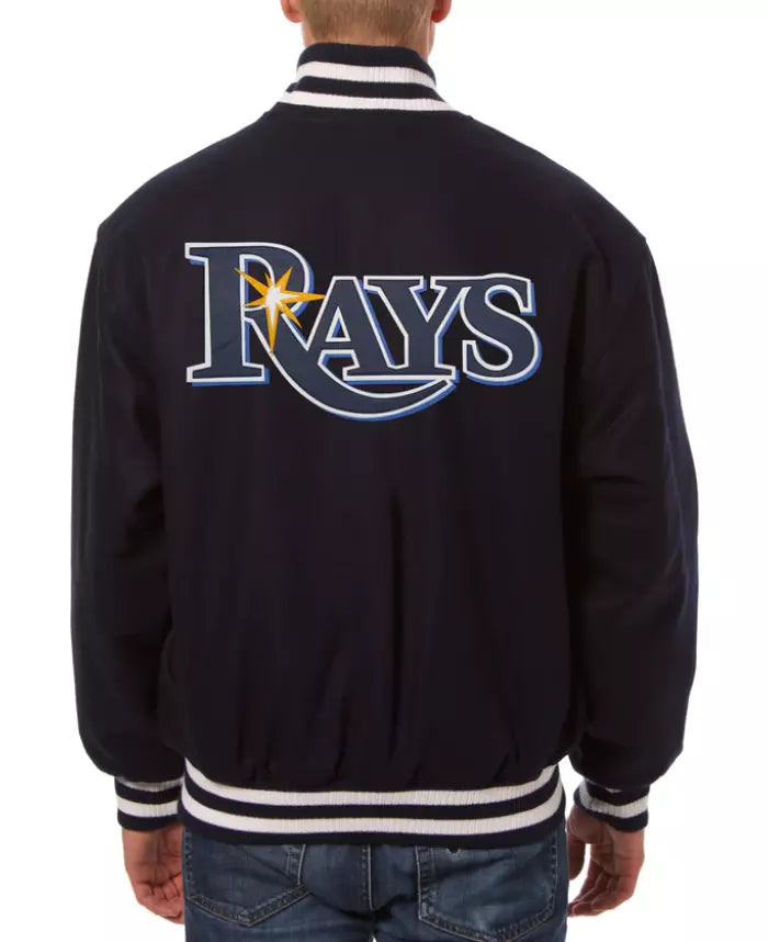 Men Tampa Bay Rays Letterman Black Wool Letterman Varsity Jacket - Baseball MLB