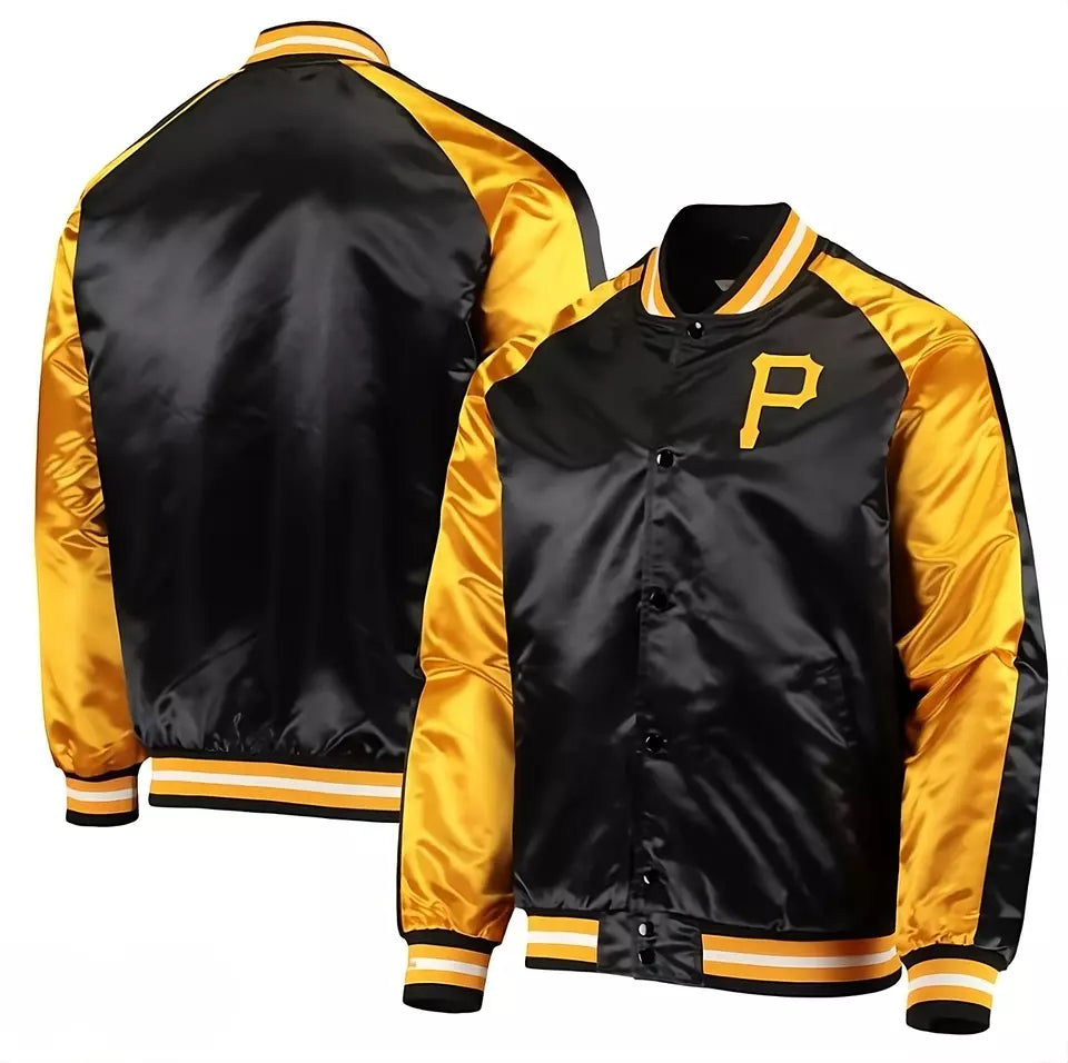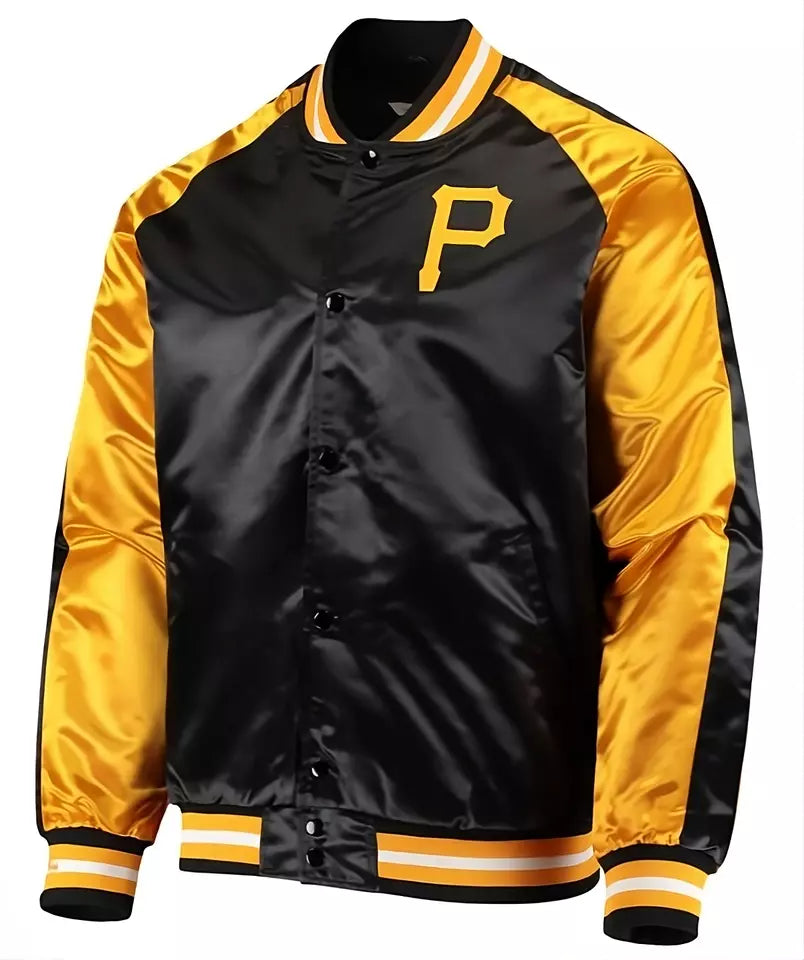Men Pittsburgh Pirates Full-Snap Jacket with Embroidery logo Patches Black & Yellow - MLB