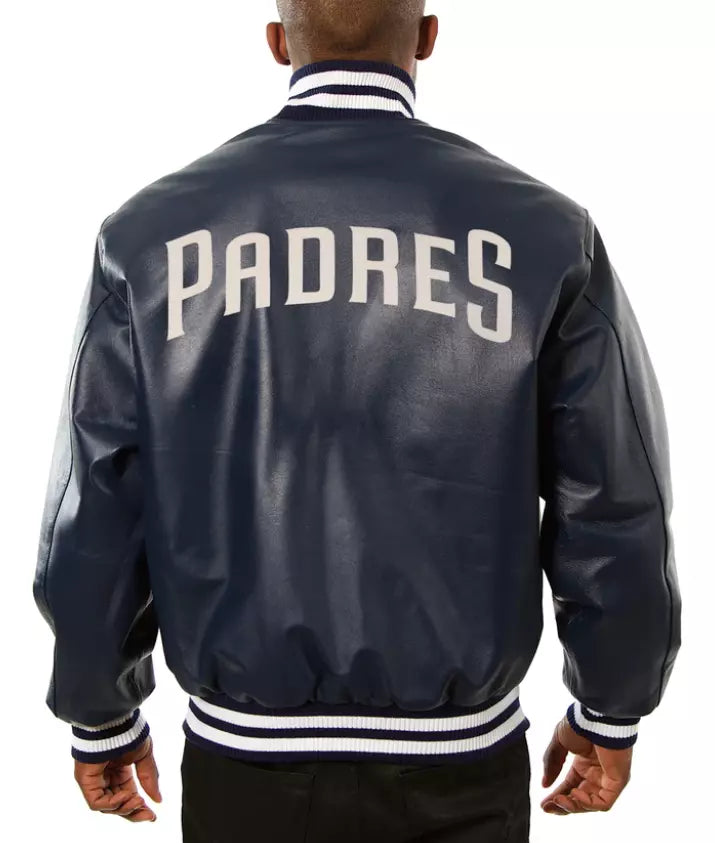 Men San Diego Padres Navy Letterman Varsity Jacket Genuine Sheep Leather - MLB
