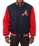Show your Atlanta Braves pride in this stylish navy and red all-wool letterman varsity jacket. Crafted for both comfort and durability, this jacket features a premium wool body and bold team colors, making it the perfect choice for fans who want to stay warm and represent their team in style. Whether you're at the ballpark or out with friends, this jacket is sure to turn heads.