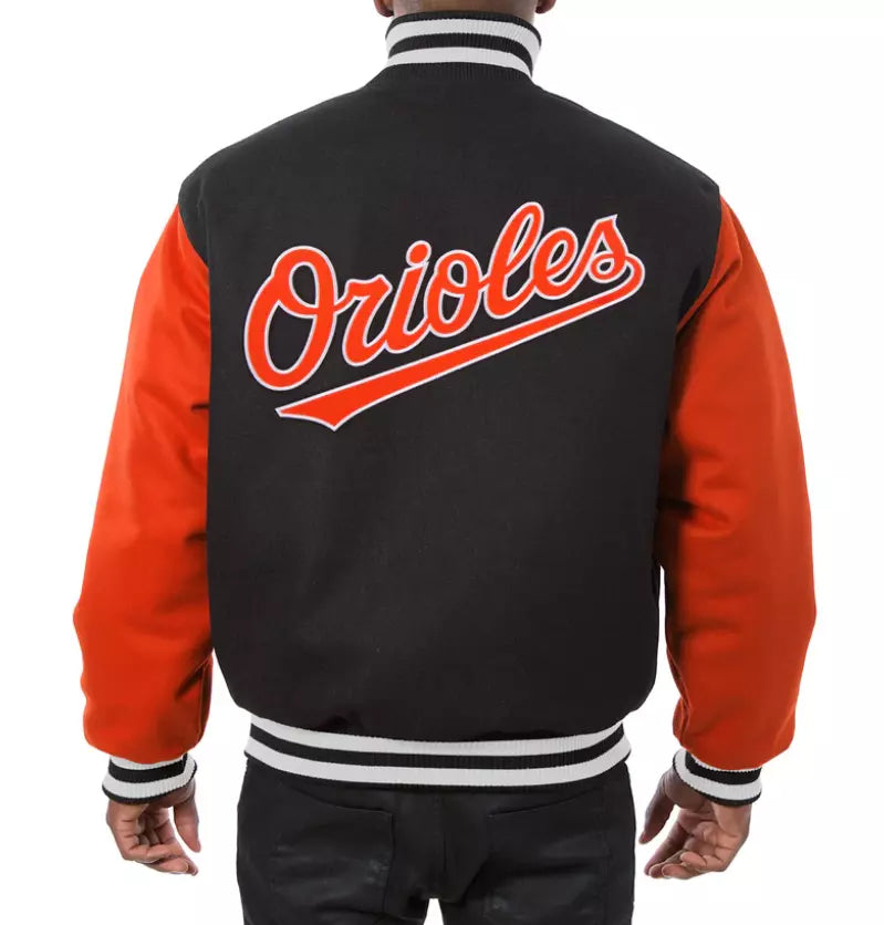 Men Baltimore Orioles Black Letterman Varsity Jacket Wool Orange Real Leather Sleeves - MLB