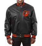 Support the Baltimore Orioles in style with this Men’s Inspired Fan Letterman Varsity Jacket, featuring genuine soft black leather. Combining a sleek black leather body with premium craftsmanship, this jacket offers a bold and timeless design. The classic Orioles logo on the chest showcases your team pride, making it a perfect piece for any true fan.