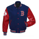 Men Boston Red Sox Red and Blue Letterman Varsity Jacket with Leather Sleeves - MLB