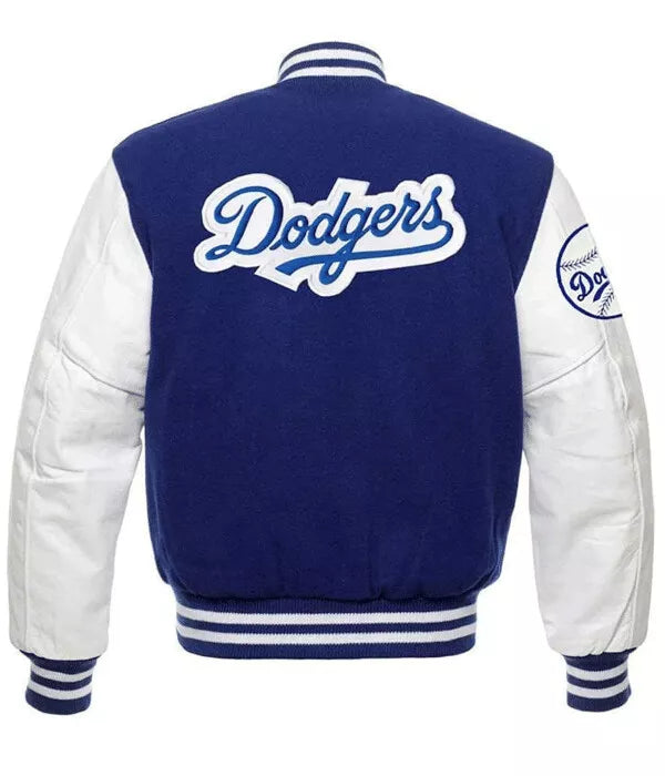 Men Letterman Los Angeles LA Dodgers Blue and White Varsity Jacket - MLB