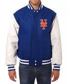 Men Letterman New York Mets Blue and White Varsity Jacket Baseball - MLB
