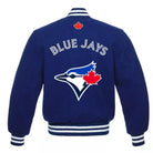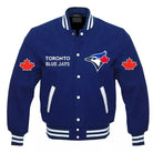 Represent your Toronto Blue Jays in style with this Men’s Blue All-Wool Letterman Varsity Jacket. The vibrant blue wool body gives this jacket a classic varsity look while ensuring comfort and warmth. The bold Toronto Blue Jays logo on the chest proudly displays your team spirit, making it a must-have for any true fan.