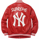 Men NY Yankees Red Letterman Varsity Leather Jacket - MLB