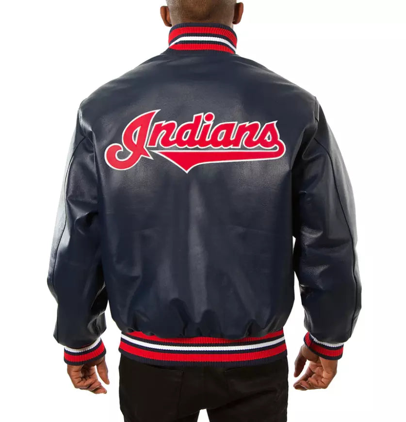 Men Cleveland Indians Full Sheep Leather Navy Letterman Varsity Jacket - MLB