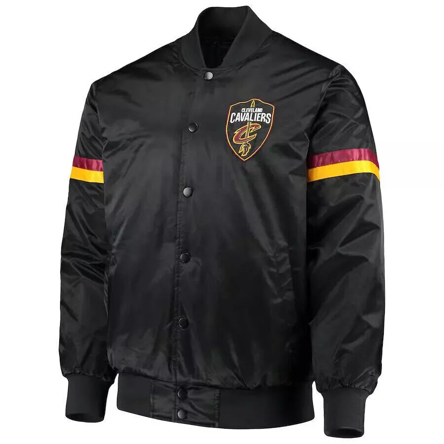 Elevate your game day look with the NBA Cleveland Cavaliers Black Satin Varsity Jacket. Made with premium satin fabric, this jacket offers a stylish, comfortable fit for fans of all ages.