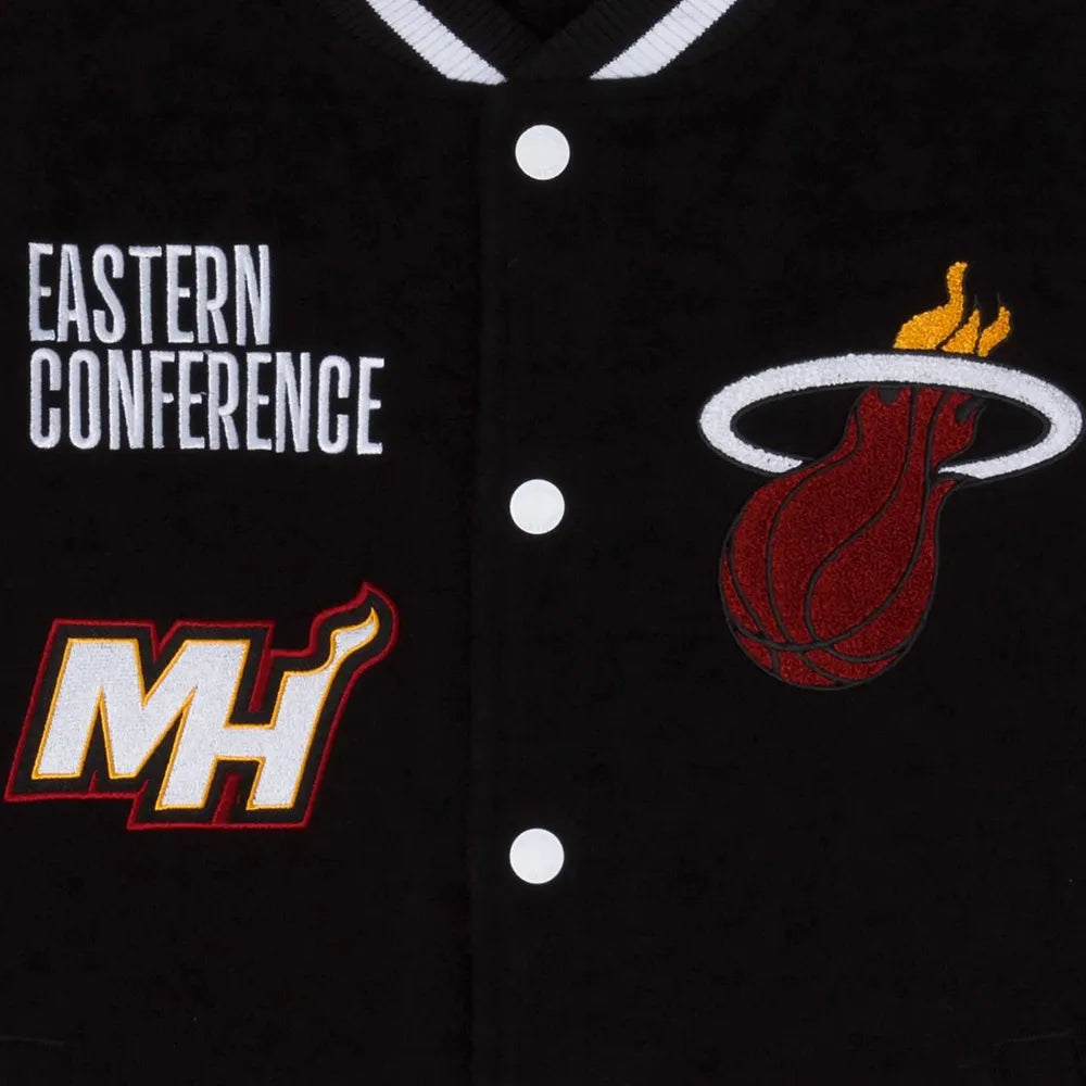 Men Miami Heat Eastern Conference Black & White Varsity Jacket - NBA