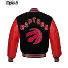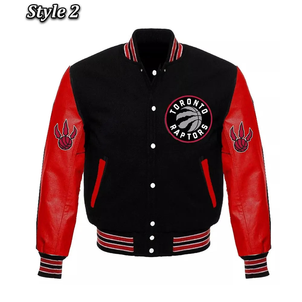 Celebrate the Toronto Raptors' championship victory with this striking black and red varsity jacket. Featuring bold team colors and premium craftsmanship, this jacket is the ultimate way to showcase your Raptors pride. Designed to keep you warm and stylish, it's a must-have for any true fan of the NBA champions.