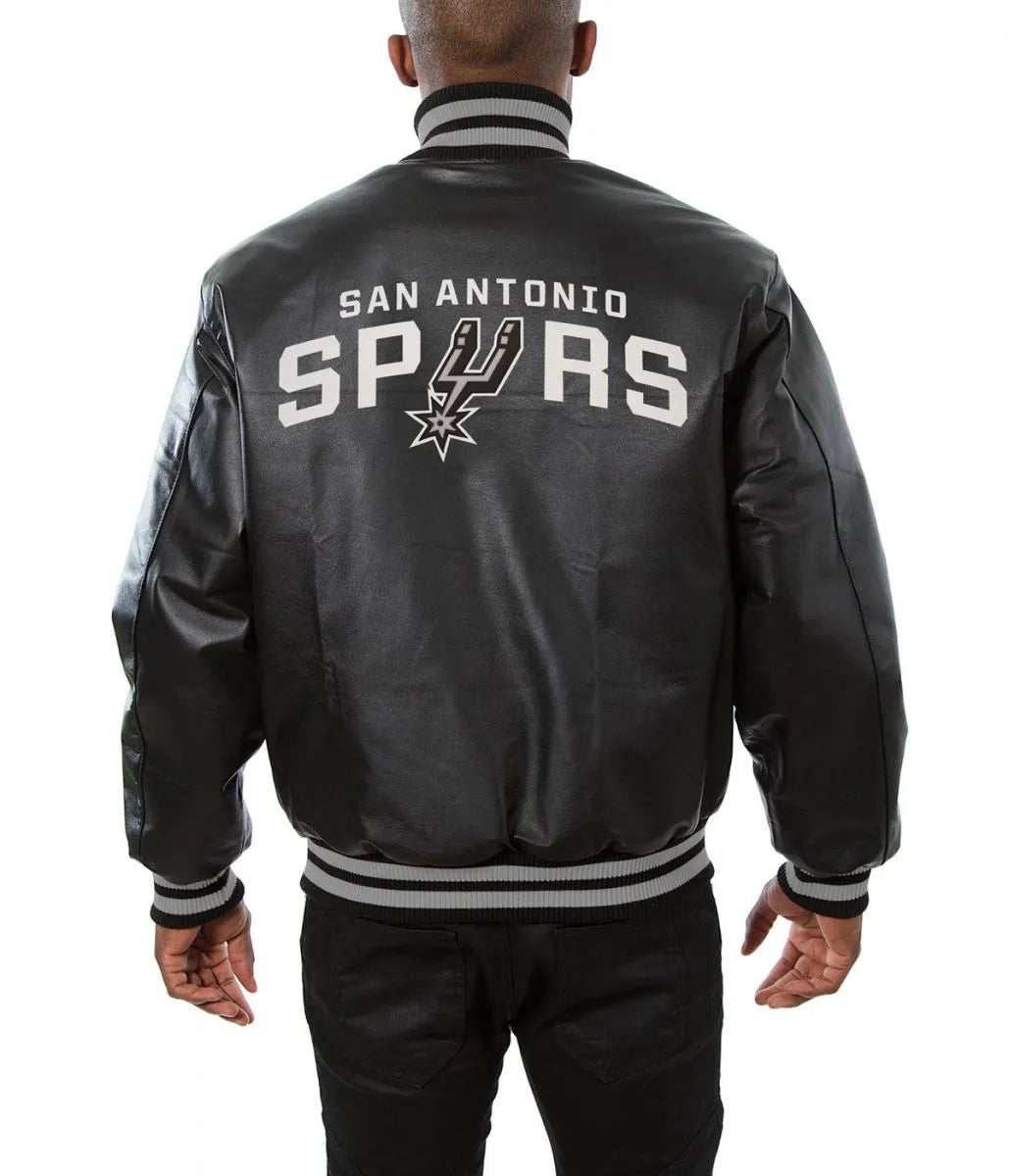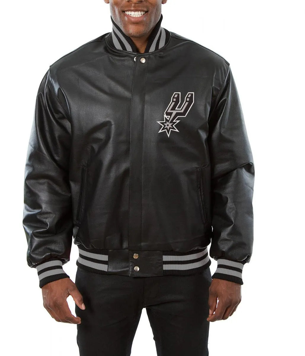 Men San Antonio Spurs Black Leather Varsity Jacket - NBA