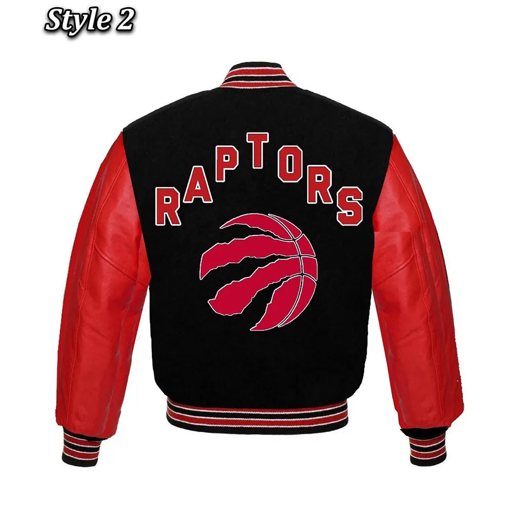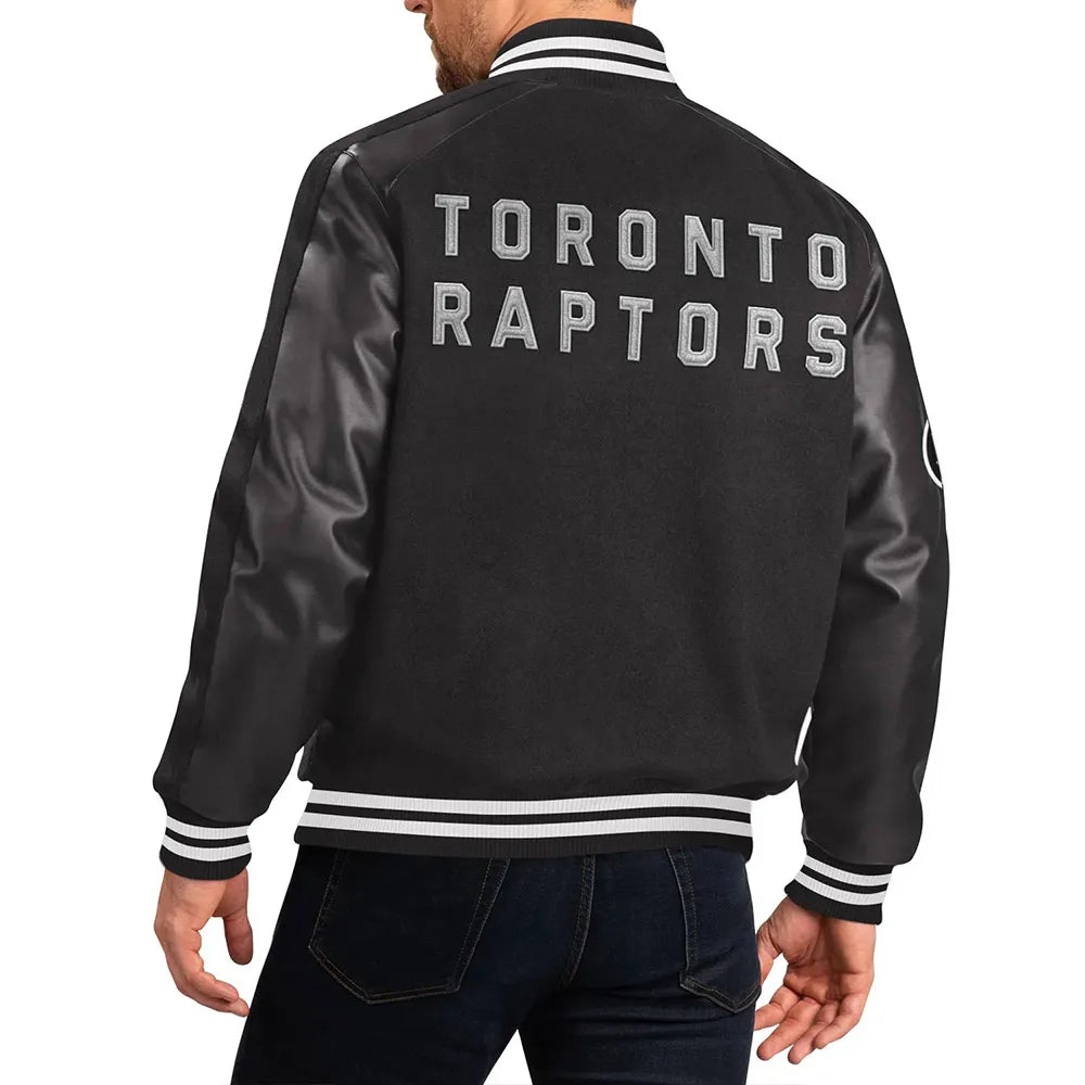 Men Toronto Raptors Varsity Black Wool Leather Jacket -NBA