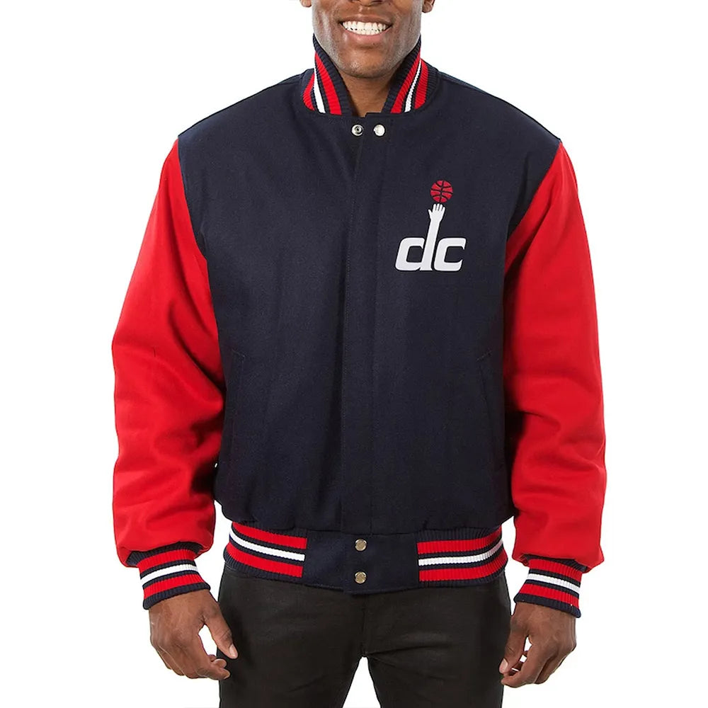 Men Washington Wizards Domestic Navy & Red Wool Varsity Jacket - NBA