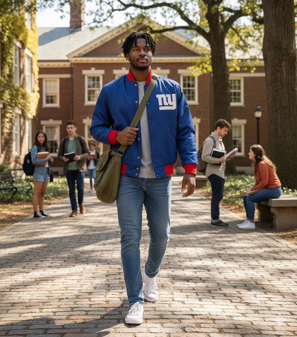 Celebrate one of the most iconic eras in NFL history with this authentic 1959 NY Giants Blue Varsity Jacket. Crafted to honour the legendary team that defined football excellence, this jacket combines vintage charm with premium materials for the ultimate throwback piece.