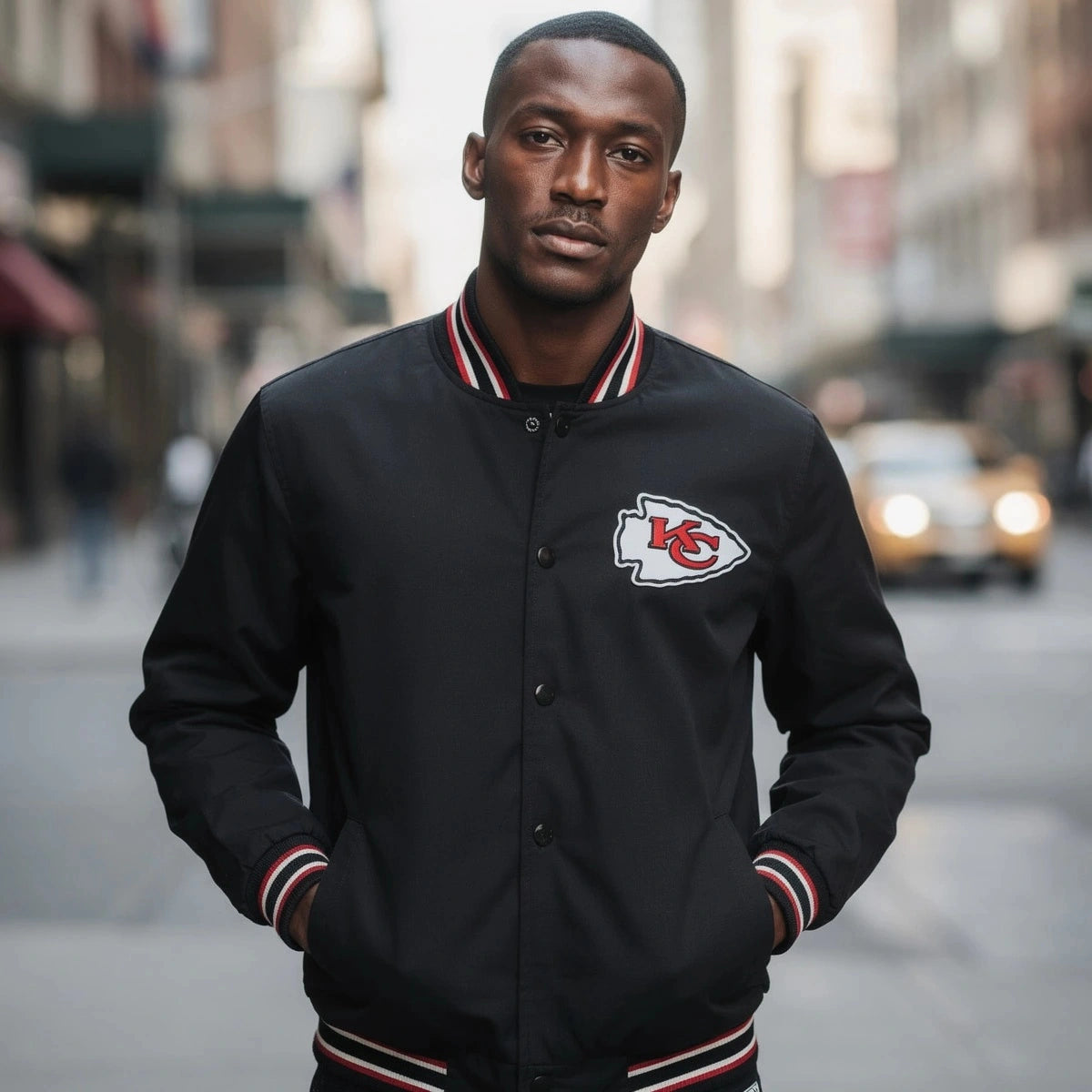 Step into game day or any day with this Men's Black Kansas City Chiefs Poly Twill Varsity Jacket. Designed for true NFL fans who demand both style and durability, this jacket combines classic varsity aesthetics with modern performance materials.