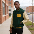 Relive the golden era of Green Bay Packers football with this meticulously crafted 1950 Green Varsity Jacket. This isn't just a jacket, it's a piece of NFL history that brings the legendary spirit of the Packers' early championship years right to your wardrobe.