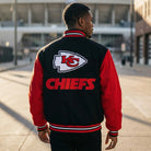 Imagine walking into Arrowhead Stadium wrapped in this premium varsity jacket, the perfect blend of warmth, style, and team pride. Whether you're tailgating in the parking lot, watching from the stands, or catching the game at your favorite sports bar, this jacket makes a statement.