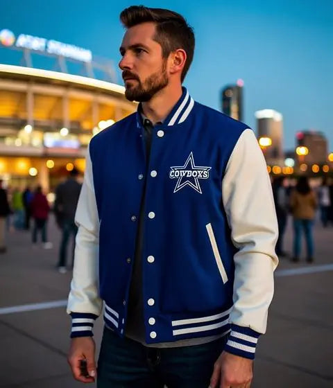 Celebrate America's Team in authentic style with this premium Dallas Cowboys varsity jacket. Crafted for true fans who demand quality and heritage, this letterman-style jacket combines classic NFL tradition with bold team pride.