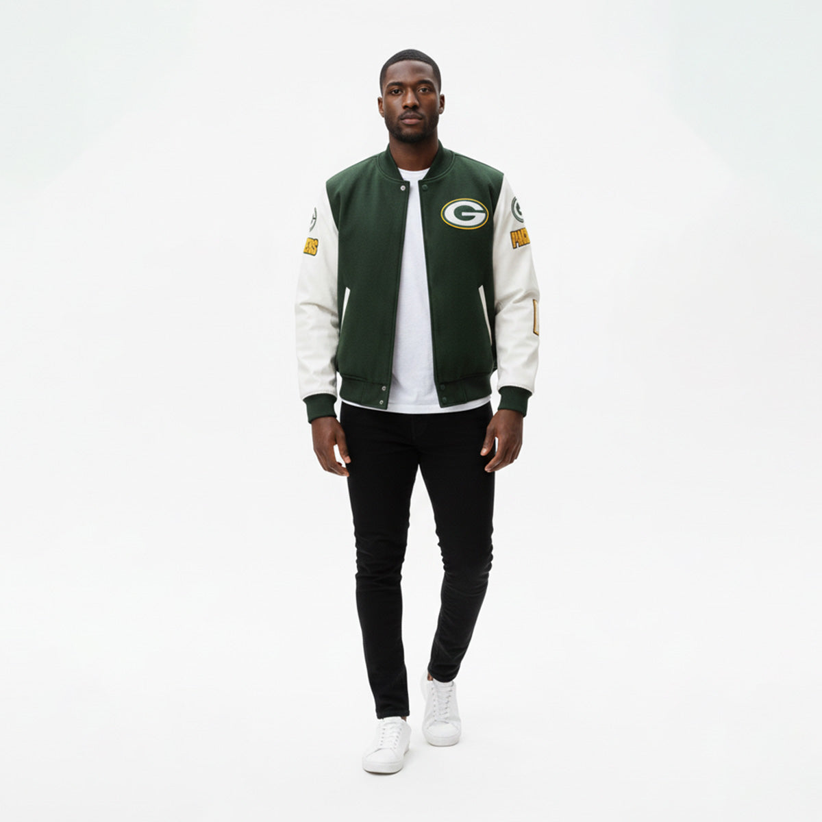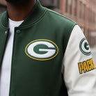 Show your unwavering Packers pride with this premium NFL varsity letterman jacket. Crafted for true fans who demand both style and authenticity, this green and white jacket brings classic team spirit to your everyday wardrobe.