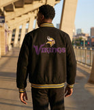 Men Minnesota Vikings Black Wool Varsity Bomber Jacket - NFL