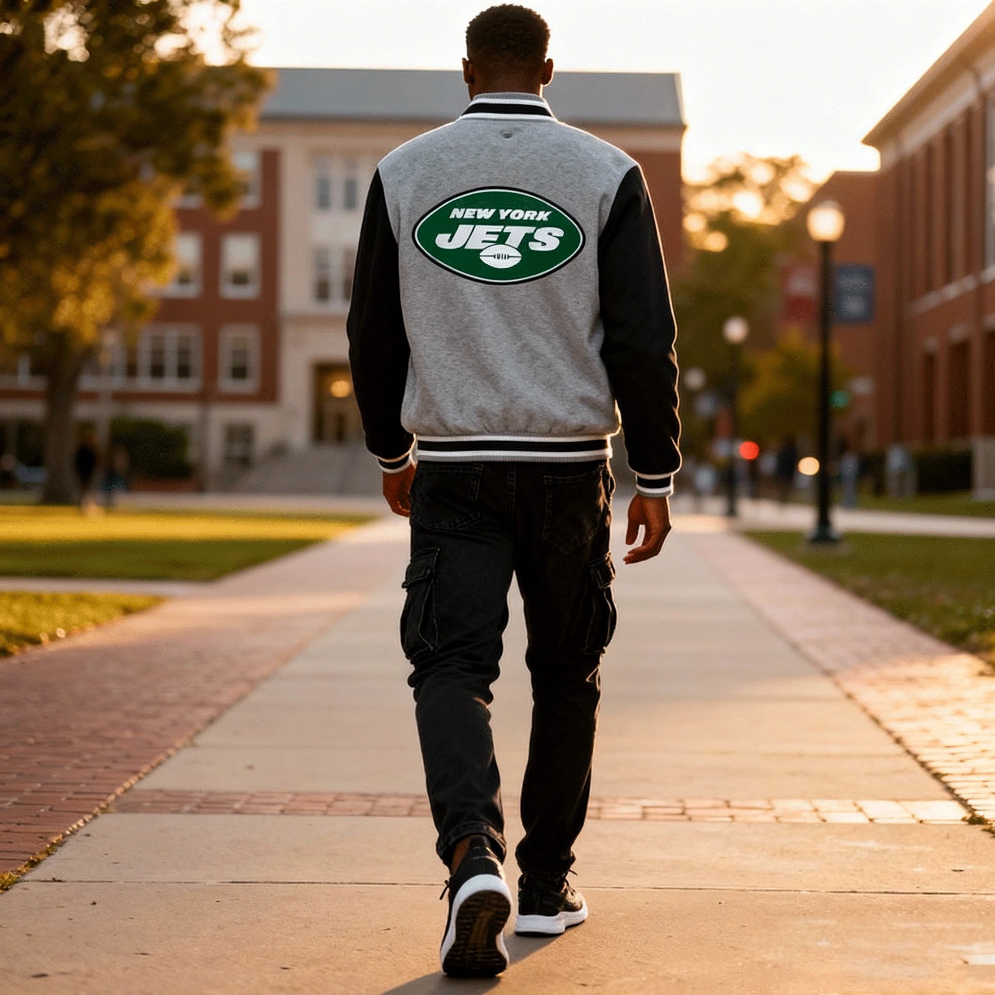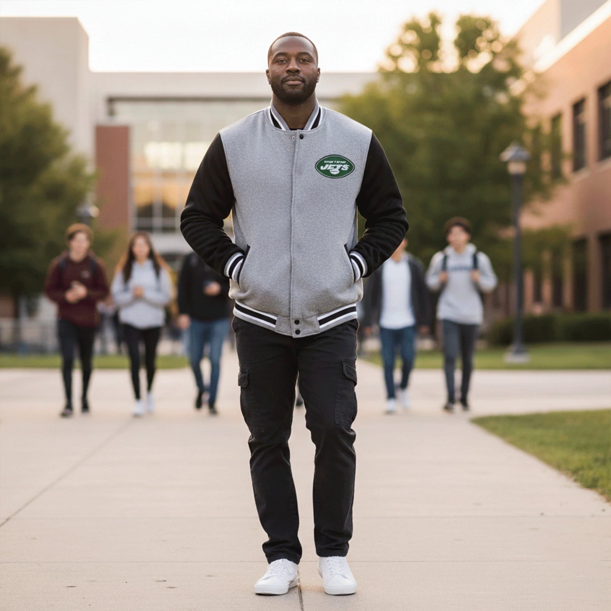 Show your unwavering support for the New York Jets with this premium varsity wool jacket that combines authentic team spirit with timeless athletic style. Crafted from high-quality materials, this jacket delivers both comfort and durability for seasons to come.