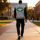 Imagine walking into the stadium wrapped in this iconic varsity jacket – the soft wool keeping you warm while the leather sleeves add that authentic athletic edge. Whether you're cheering from the stands or meeting friends for the game, you'll feel the heritage and pride of Jets Nation with every wear. This isn't just a jacket; it's a statement of loyalty that never goes out of style.