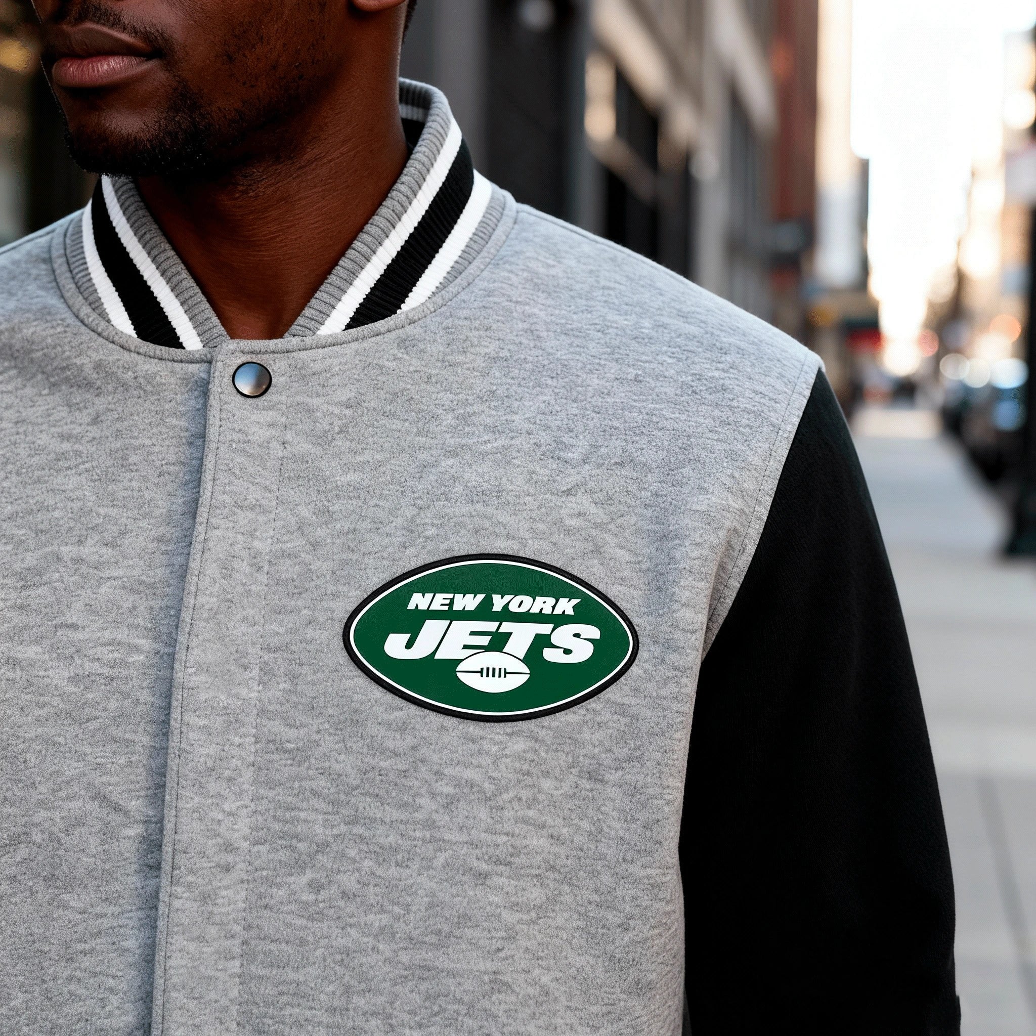 Men New York Jets Gray and Black Varsity Wool Jacket - NFL