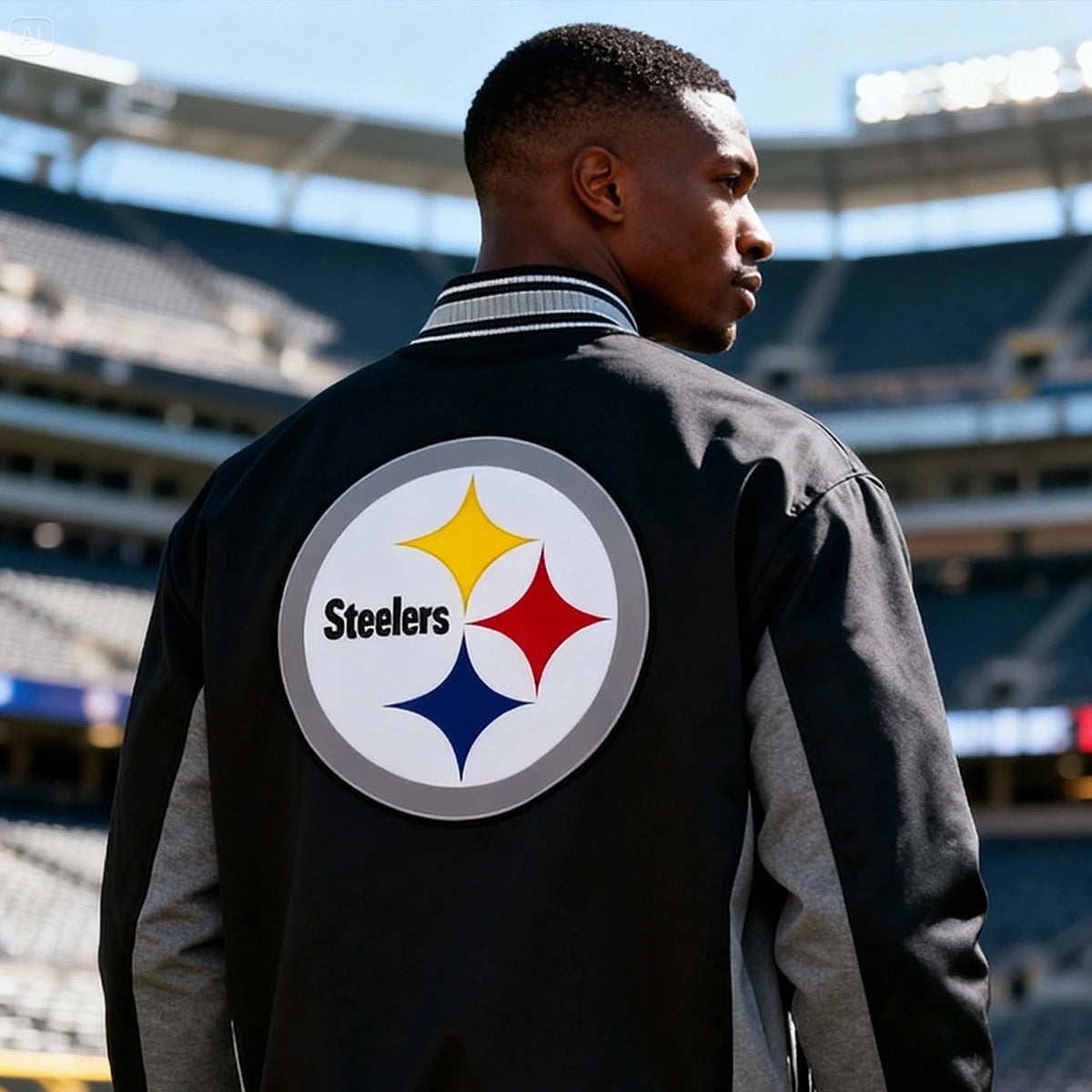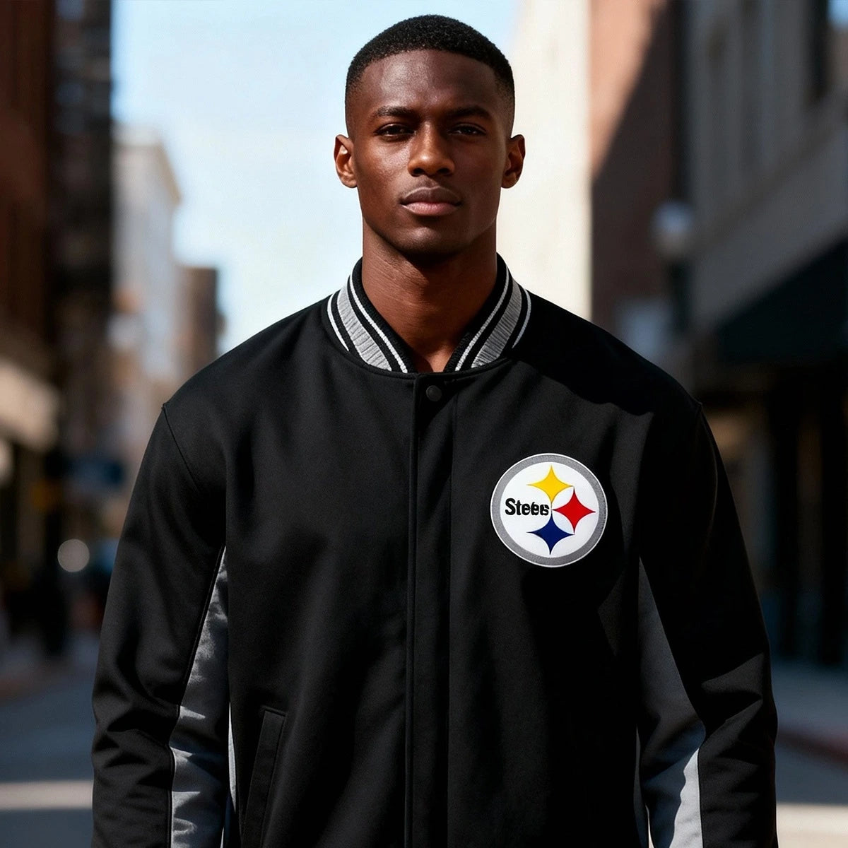 Represent your team in style. Add this premium Pittsburgh Steelers varsity jacket to your collection today.