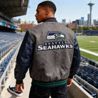 Show your unwavering Seahawks pride with this premium charcoal and navy varsity jacket that combines authentic NFL heritage with modern comfort. Crafted for true fans who demand both style and quality.