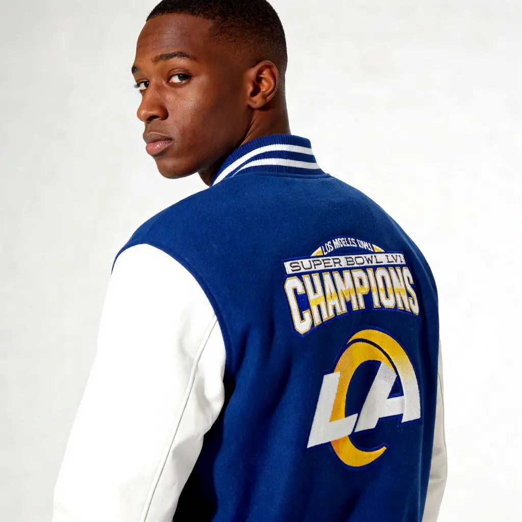 Own a piece of championship history. Order your LA Rams Super Bowl LVI varsity jacket today.