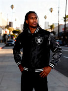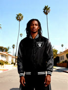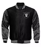 NFL Oakland Raiders Black Satin Bomber Embroidery Logo Varsity Jacket