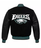 Philadelphia Eagles Letterman Black Varsity Jacket With Genuine Leather Sleeves