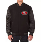 Letterman San Francisco 49ers Black Varsity Jacket with Leather Sleeves