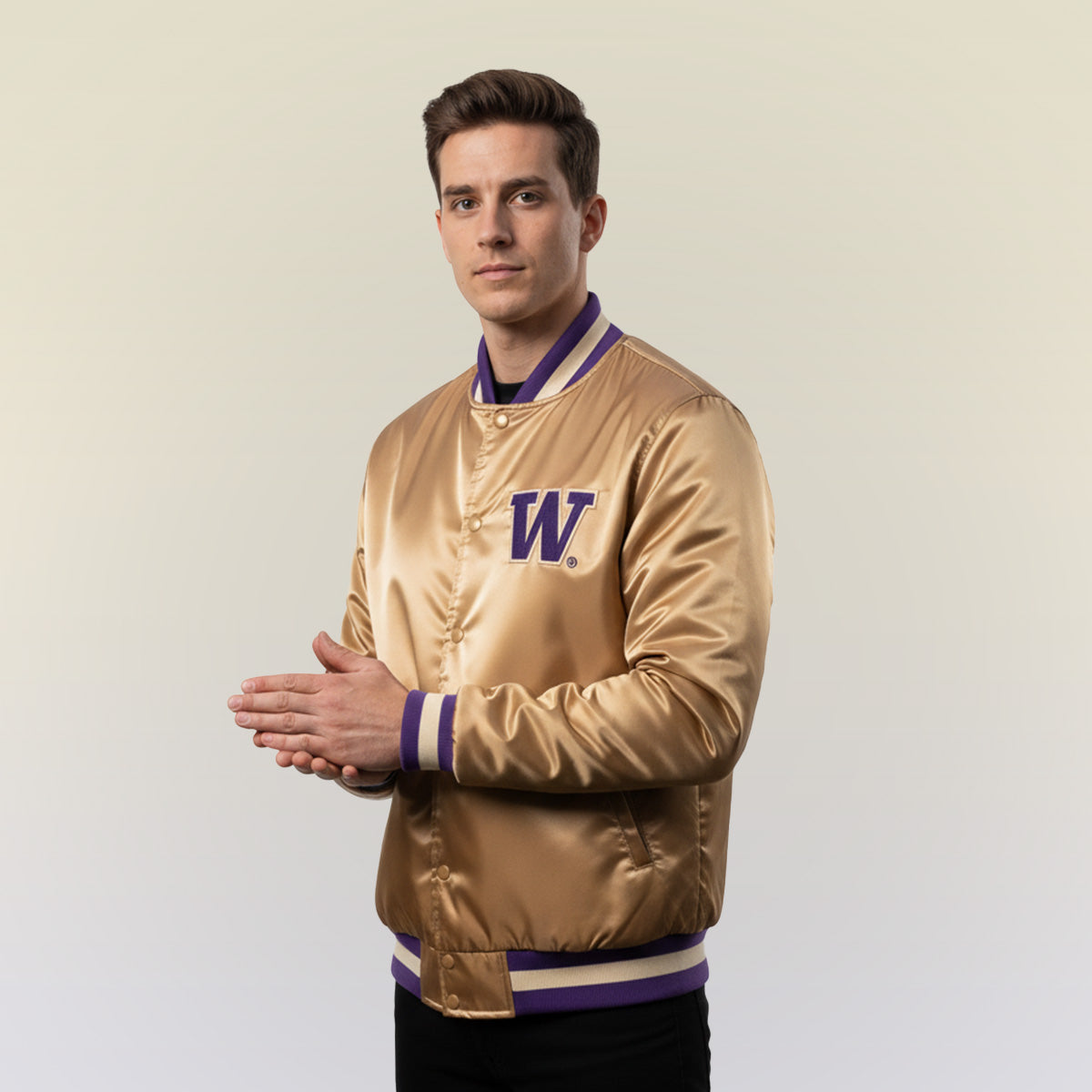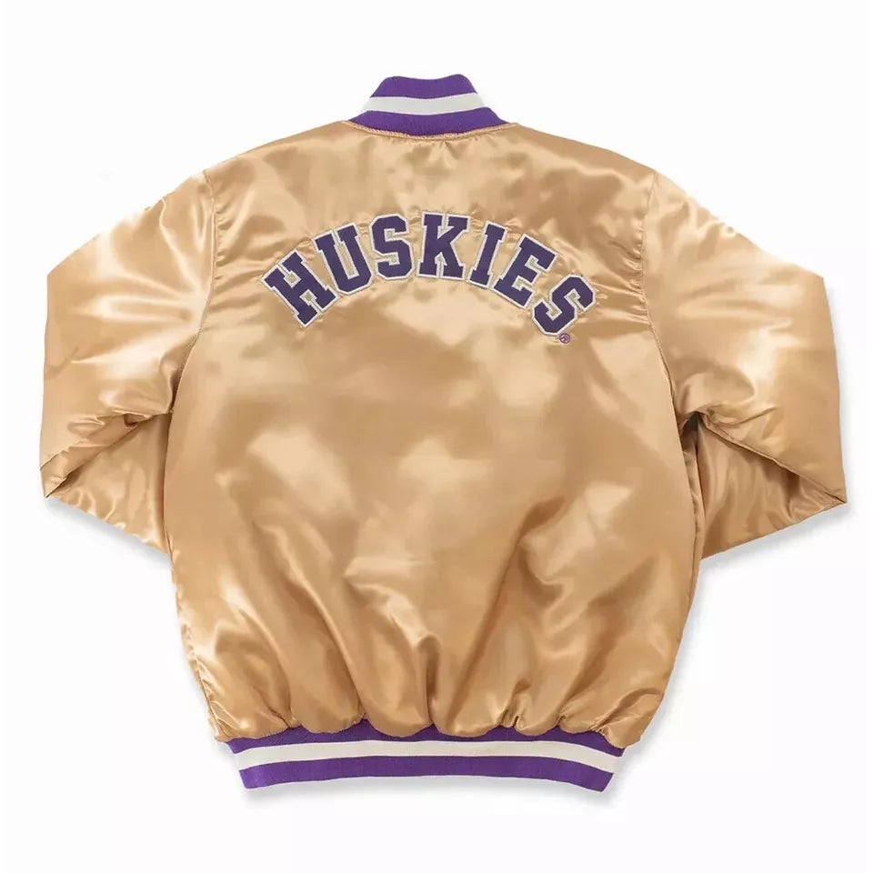 Washington Huskies Gold Satin Varsity Jacket