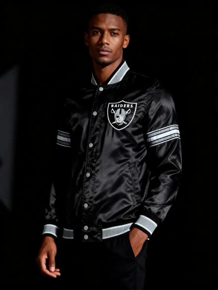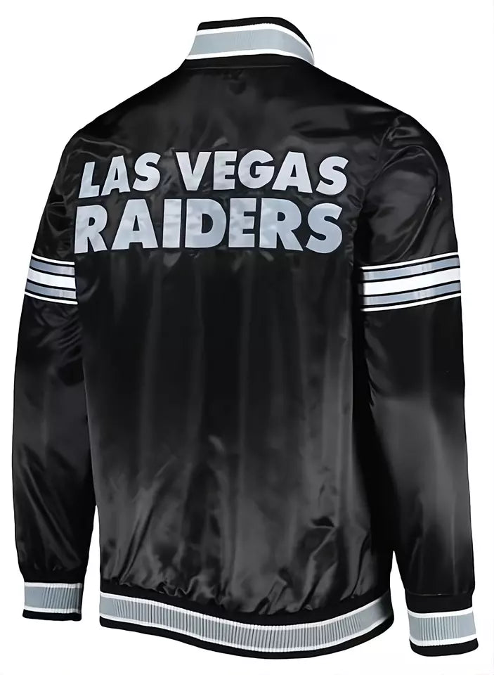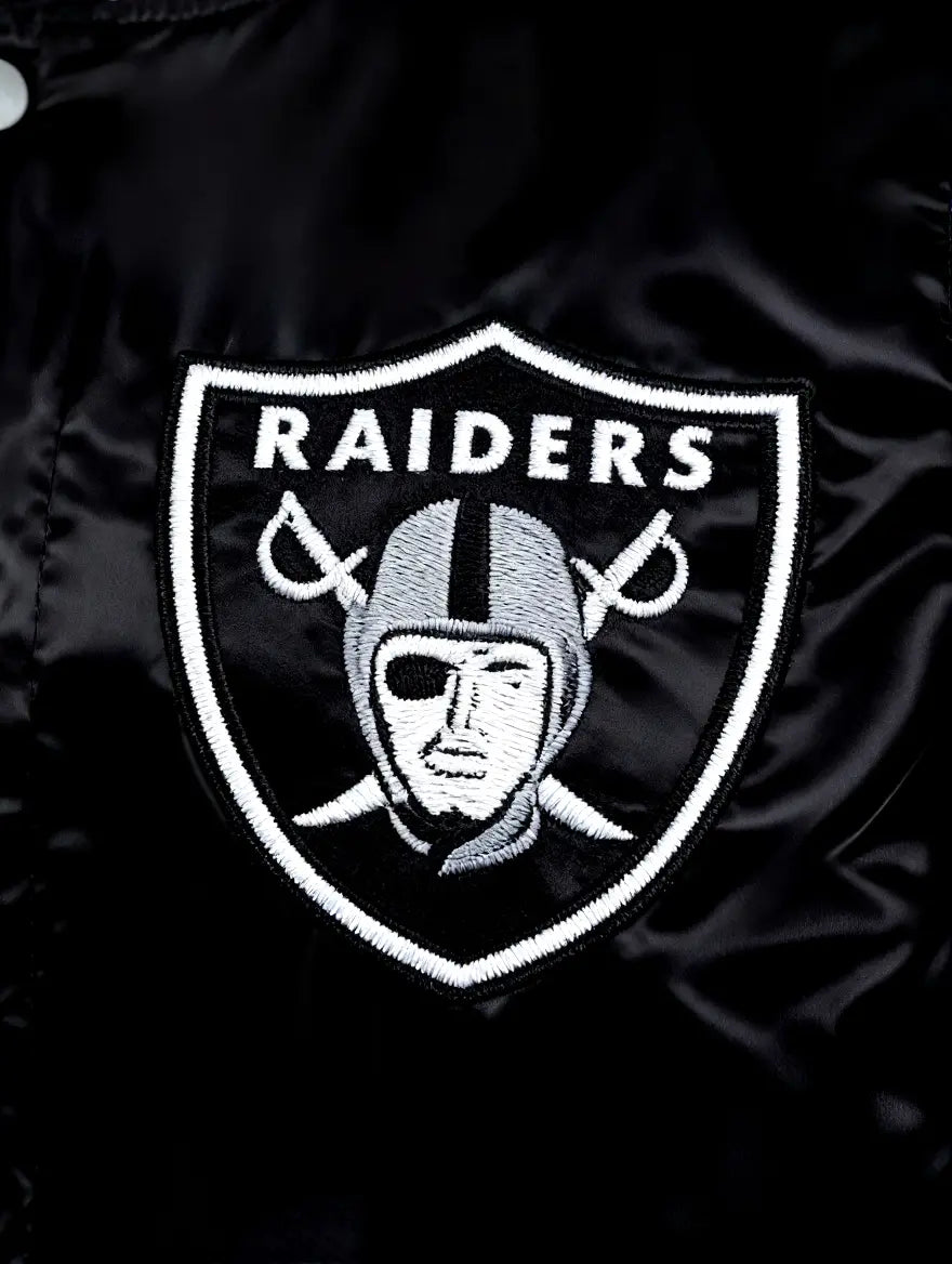 NFL Las Vegas Raiders Black Satin Varsity Jacket full-snap Embroidery logos