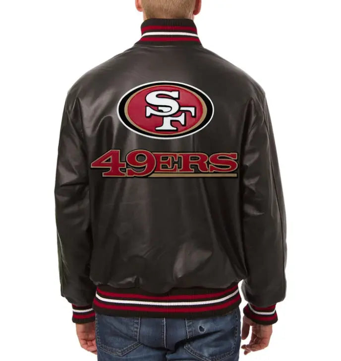 NFL San Francisco 49ers Black Letterman Varsity Jacket Real Lambskin Leather